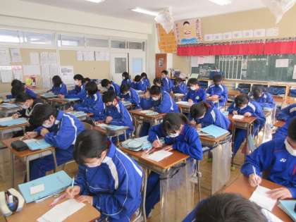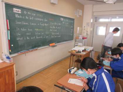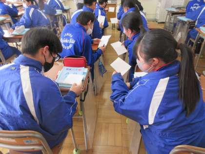 2月2日(木) 3年生英語の授業 公開日 2023/02/02 更新日 2023/02/02 できごと 3年生の英語の授業ではこれまで学習した内容を確認しながら、入試に向けた問題演習を行いました。短い時間でポイントを絞って問題を解き、その後、隣の人と考えを交流し、答え合わせをしました。集中、交流、解説と生徒はメリハリのある取り組みで力をつけました。