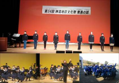2月4日(土)、みかぼみらい間で、第34回神流地区文化祭が開催され、神流小学校合唱部と本校吹奏楽部が出演しました。