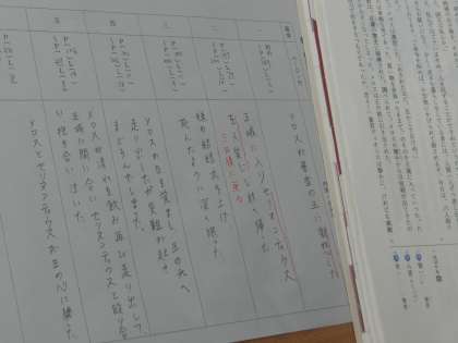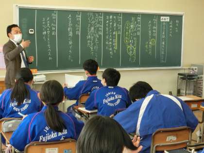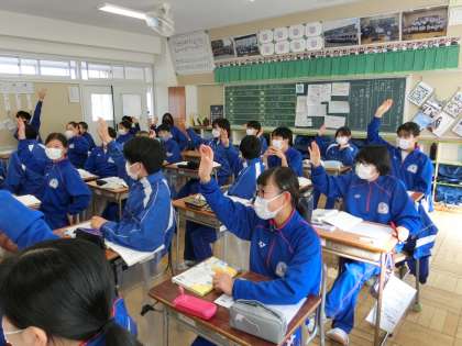 2月7日(火) 2年生国語の授業 公開日 2023/02/07 更新日 2023/02/07 できごと 「走れメロス」の展開と構成を捉える授業です。内容のまとまりごとに要約をした後、物語のクライマックスはどこなのかについて考えました。「題名の『走れメロス』」が回収される場面がクライマックスだ。」という生徒の意見に、「おお!」という賞賛の声が上がりました。