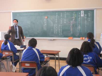 2月9日(木) 1年生国語の授業 公開日 2023/02/09 更新日 2023/02/09 できごと 「単語の性質について理解する」 1年生の国語の授業では、言葉の最小単位である「単語」の性質について学習しました。 「活用する単語」「活用しない単語」について先生が具体例をあげながら説明し、生徒はうなずきながら説明を聞く様子が見られました。