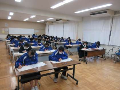 本日、漢字検定がありました。約30名の生徒が集中して検定に取り組みました。積極的に検定を受ける姿勢が大変素晴らしいです。北中生には様々なものに積極的に挑戦し続けて自分の力をさらに伸ばしてほしいと思います。