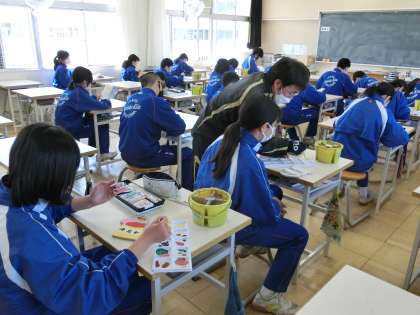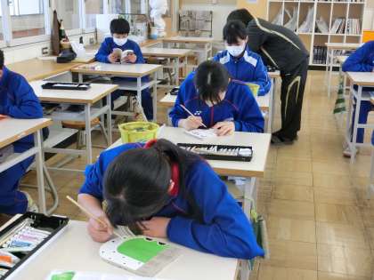 ドア表示の制作も、いよいよ大詰めです。工夫された作品を丁寧にポスターカラーで彩色しました。