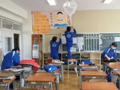 3月8日(水) 3年生愛校作業2 公開日 2023/03/08 更新日 2023/03/08 できごと 3年生の教室では、寄せ書きや学級旗などの掲示物を剥がして大掃除を行い、慣れ親しんだ教室がスッキリときれいになりました。卒業までに登校する日も残り3日となりました。