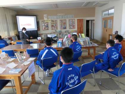 3月8日(水) ALTによる読み聞かせ 公開日 2023/03/08 更新日 2023/03/08 できごと 昼休みの図書室でALTによる読み聞かせが行われました。今回選んだ本は、『THE VERY HUNGRY CATERPILLAR』(はらぺこあおむし)です。参加した生徒たちは、画面に映し出された鮮やかな色彩の絵本を見ながら英語での読み聞かせを聞き、内容についての英語の質問に答えて楽しいひとときを過ごしました。