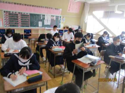 4月20日(木) 2年生国語の授業 公開日 2023/04/20 更新日 2023/04/20 できごと 2年生国語の授業の様子です。 教科書「アイスプラネット」。 主人公の人柄をあらわす表現をもとに人物像を考えました。 登場人物と主人公との関係性について、表現をもとにまとめていました。教室に行ったときには、授業の振り返りをしているところでした。
