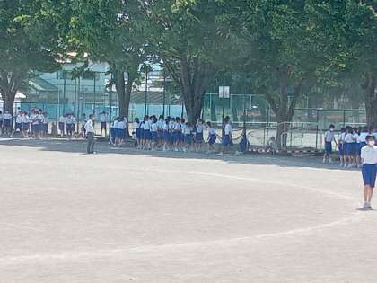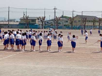 2年生は、これからおこなわれる学年レクの長縄跳びの猛練習。日陰を選んで、練習するくらすもあり、校庭の真ん中付近で元気にジャンプしているクラスもあり・・・。ました。どのクラスも、そばには担任の先生の姿もありました。クラス一丸となってそのクラスらしさを出しながら、練習に励んでいました。元気溌剌の様子です。