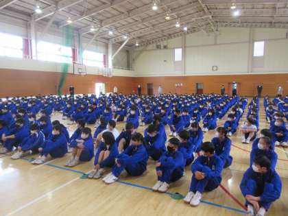 本日5校時に前期学級役員、専門委員会役員の任命式を行いました。体育館に全校が集まり、役員になった生徒一人ひとりの名前が呼ばれ、生徒は呼名されると大きな声で返事をしました。その後、代表者に校長先生より任命書が手渡されました。