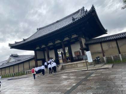 あいにくのお天気ですが、みんなで法隆寺を見学しました! 今は旅館に向けて移動中...
