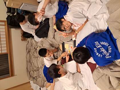 就寝直前の様子です。こんな時間がすごく楽しそうです。この後、みんなスヤスヤと寝入ってました。明日も元気に思い出に残る班別行動ができるといいですね。