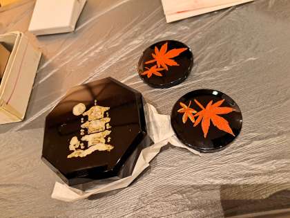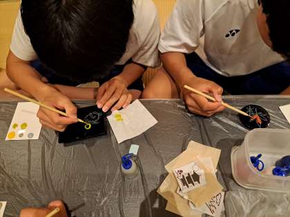 加飾体験 公開日 2023/05/15 更新日 2023/05/15 3年・修学旅行 今日は大広間で加飾体験を行いました。漆を使った蒔絵風の絵付けです。職人の方の説明を聞き、かきはじめは、ぎこちない様子でしたが、徐々にコツをつかんで、完成させていきました。作品は持ち帰りですので、あとでお子さんの作品をご覧ください。