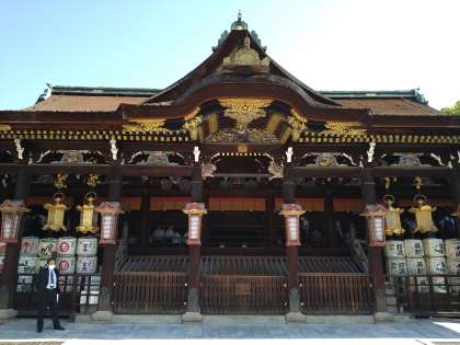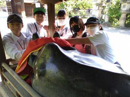1組、2組は、北野天満神社からスタートしました。本殿で昇殿参拝を受けました。