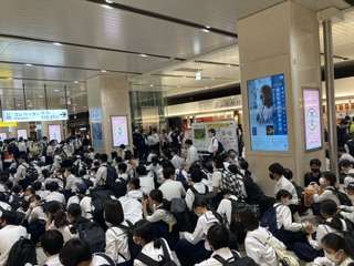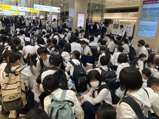 京都駅コンコースは、帰りの修学旅行生でいっぱいです。