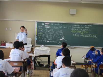 7月5日(水) 1年生社会科の授業 公開日 2023/07/05 更新日 2023/07/05 できごと 1年生社会科の授業の様子です。 縄文時代から弥生時代へ。 人々の生活や特徴を資料などから学んでいました。 先生から紹介された土偶のレプリカを、実際に手に取りながら話に耳を傾けていました。