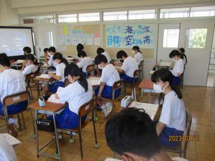 2年生理科の授業の様子です。 「維管束」 単子葉類と双子葉類の維管束の並び方は違うのですね。