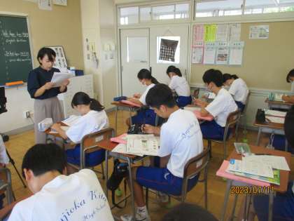 7月11日(火) 3年生英語の授業 公開日 2023/07/11 更新日 2023/07/11 できごと 3年生英語の授業の様子です。 これまでは、現在完了形+現在進行形 ここでは、「現在完了進行形」を習います。 今も継続している様子をあらわします。