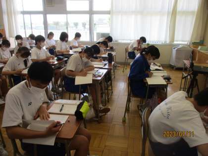 7月11日(火) 3年生数学科の授業 公開日 2023/07/11 更新日 2023/07/11 できごと 3年生数学の授業の様子です。 「平方根で二次方程式を解こう」 平方根とは2乗するとなる数ですね。 3年生の真剣さが伝わってきます。