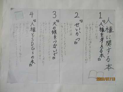 過日の人権集中学習期間にちなんだ話題のコーナーも作成し、人権に関わる本の紹介や人権に関わるクイズなどが掲載されていました。