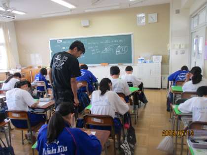 7月13日(木) 1年生技術の授業 公開日 2023/07/13 更新日 2023/07/13 できごと 1年生技術の授業の様子です。 授業の終わり際に教室にお邪魔しました。 生徒は投影図で示された立体を「等角図法」を使って描いていました。 最後の図形では、手を止め悩んでいる生徒も見られました。 最後は、友達や先生に聞きながら、チャレンジを続けていました。