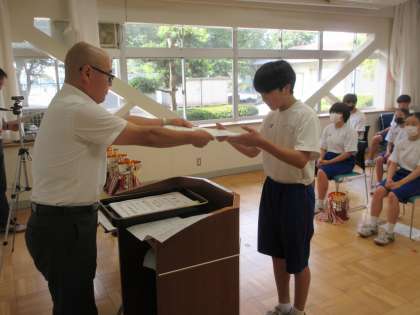 藤岡多野中体連夏季剣道大会、藤岡多野中体連夏季柔道大会、多野藤岡中体連夏季サッカー大会の表彰です。