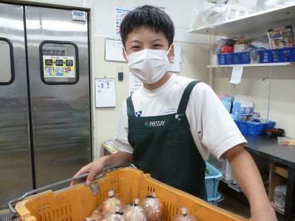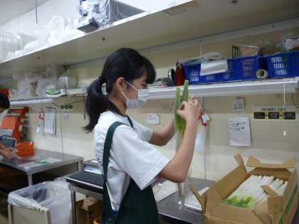 フレッセイでは野菜を袋詰めする作業を体験させいただいています。真剣に作業を行うことができました。