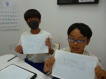 アーキスホームおぎわらでは実際の土地に建てる家の図面を考える体験をさせていただきました。よく考えて自分なりのアイデアを出していました。