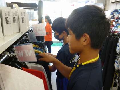 ラケットショップタジマヤでは品出しや値札付けを体験させていただきました。熱心に取り組むことができました。