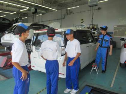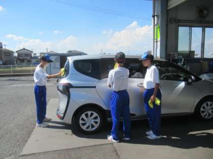 ネッツトヨタは本日が初日の体験です。作業の見学を熱心に行っていました。洗車後の車を磨き上げていました。