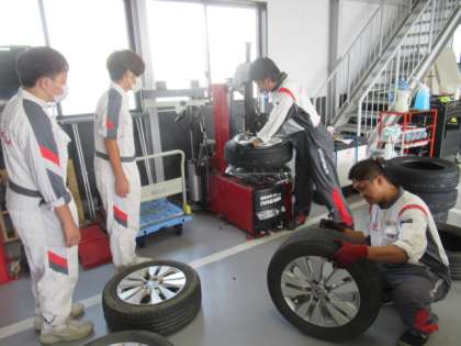 ホンダカーズ藤岡店では、タイヤ交換の様子を見学していました。