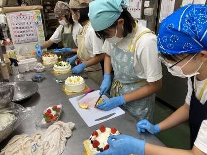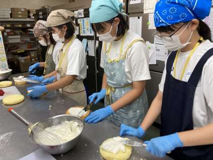 最終日の活動で、オリジナルのホールケーキを作らせて頂きました。
