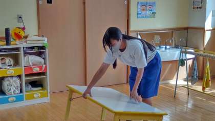 チャレンジウィーク 藤岡幼稚園 公開日 2023/09/08 更新日 2023/09/08 2年・チャレンジウィーク 藤岡幼稚園では、給食や降園後の先生の手伝いなど様々な活動に取り組んでいました。園児と楽しそうに話をする様子も見られました。