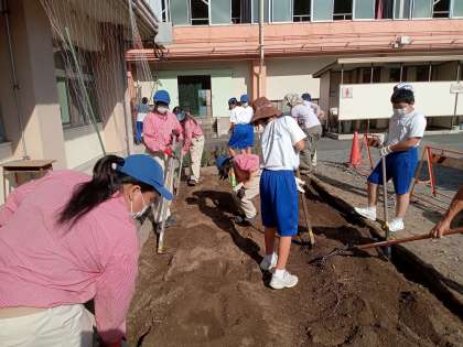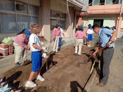 9月12日(水)午後、大変熱い中でしたが、北校生が本校を訪れ、6組、7組の生徒と一緒に学校園作りを手伝ってくださいました。ありがとうございました。