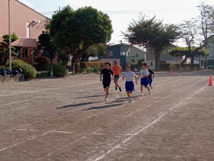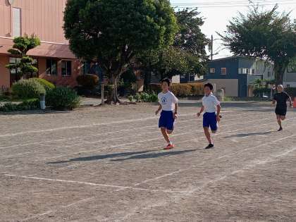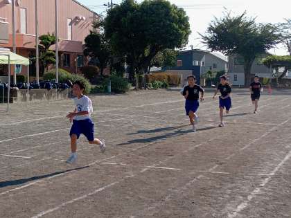 9月13日(水) 駅伝練習 公開日 2023/09/13 更新日 2023/09/13 できごと 9月13日(水)、今朝も駅伝部は頑張っていました。 今日もメニューは、昨日がタイムトライアルだったため、15分間走と100mの流し練習でした。 一人一人が目標を持って、真剣に取り組んでいます。 実力も確実についてきているようです。