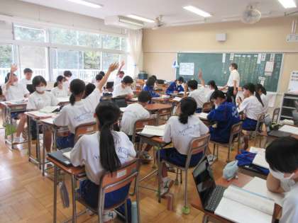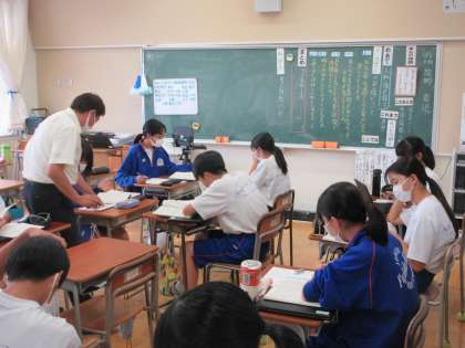 10月3日(火) 3年生国語の授業 公開日 2023/10/03 更新日 2023/10/03 できごと 3年生の国語では魯迅の故郷の内容を読み取っていました。作者が登場人物の一人である「ヤンおばさん」を登場させた意図を考えました。3年生は授業の中で積極的に自分の考えを伝えることができるようになり感心しました。