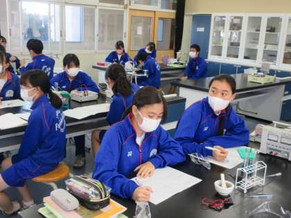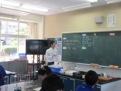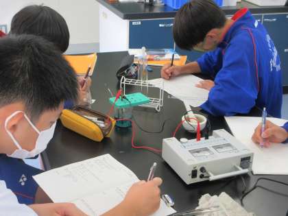 10月12日(木) 3年生理科の授業 公開日 2023/10/12 更新日 2023/10/12 できごと 3年生理科の授業(理科室)の様子です。 「塩化銅を電気分解すると何が発生するだろうか?」 予想してから実験を行いました。 理科室に行ったときには、実験の結果から考察をしているところでした。