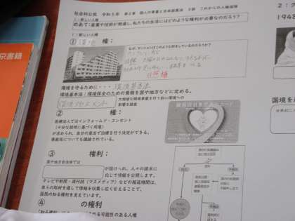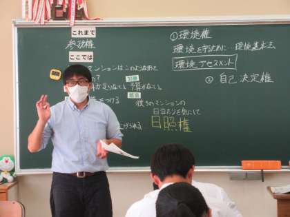 10月12日(木) 3年生社会科の授業 公開日 2023/10/12 更新日 2023/10/12 できごと 3年生社会科の授業の様子です。 今日のめあては、「産業や技術が発達し、私たちの生活にはどのような権利が必要なのだろうか?」 まずは、「社会の変化と新しい人権」から学んでいました。 環境権・自己決定権・知る権利・プライバシーの権利 他 「自己決定権」では、「臓器提供意思表示カード」や「インフォームド・コンセント」等の話題から考えました。