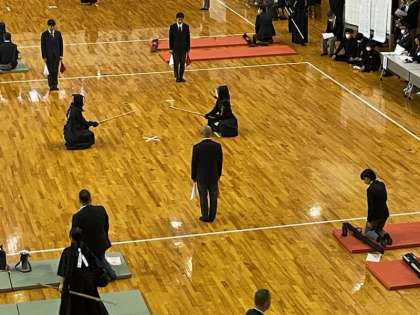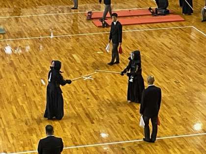 10月14日(土) 群馬県秋季大会(剣道部) 公開日 2023/10/15 更新日 2023/10/15 できごと ぐんま武道館では剣道部が県大会個人戦に臨みました。会場は熱気に溢れ、各試合場から竹刀のぶつかる音と気合いの入った声が聞こえていました。北中選手も持てる力を発揮し、善戦しました。