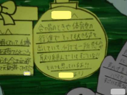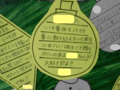 12月5日(火) ハッピーはあとふるツリー 公開日 2023/12/05 更新日 2023/12/05 できごと 昨日から、人権集中学習がスタートしています。 昨日の学級活動の時間を使って、ハッピーはあとふるツリーを作成しました。 友達のよいところを見つける活動です。 各クラスの教室や廊下にツリーが掲示され、友達のよいところが書かれたカードがひしめいていました。
