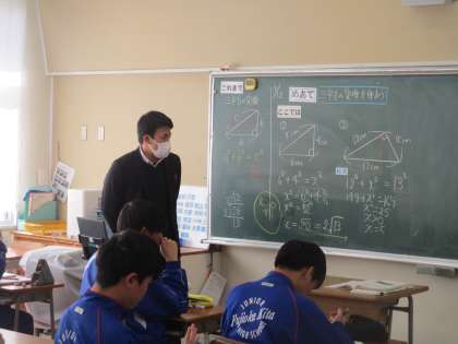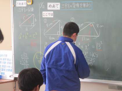 1月12日(金) 3年生数学の授業 公開日 2024/01/12 更新日 2024/01/12 できごと 3年生数学の授業の様子です。 今日のめあては、「三平方の定理をつかおう」 三平方の定理を使って解く問題にチャレンジしていました。 121 144 169 196 225 256 289 覚えておくといいですね。 素因数分解も大事ですね。