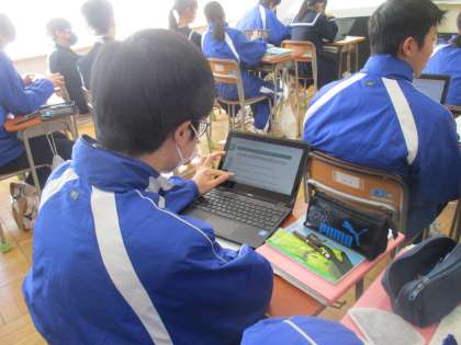 1月16日(火) 3年生英語の授業 公開日 2024/01/16 更新日 2024/01/16 できごと 3年生英語の授業の様子です。 今日のめあては、「ひこにゃんはどんな街の、どんなキャラクター?」 人や物を詳しく説明する表現の仕方(どんな〜)について学んでいきます。 まずは、授業の前半では、デジタル教科書を使って、本文を読んだり、単語や熟語を調べたりしていました。