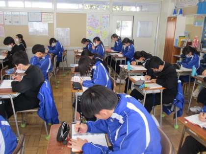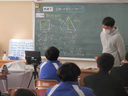 1月16日(火) 3年生数学の授業 公開日 2024/01/16 更新日 2024/01/16 できごと 3年生数学の授業の様子です。 三平方の定理の学習です。 今日のめあては「図形の計量をしてみよう」 これまでに習ったことをもとに、今日の課題との違いに着目しながら、課題にチャレンジしました。