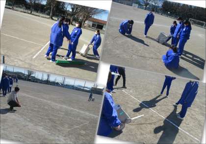 今日は、校庭に出て、各班でミッション成功に向けて方法を考え、様々な道具を使って