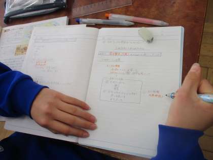 「授業参観シート」をもとに、授業スタンダードを踏まえた授業のポイントを押さえながら、参観いただきました。1年生社会科の授業の様子です。
