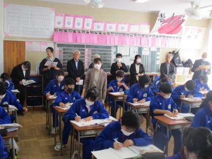 今日は、会に先立って本校1年生の授業を参観していただきました。