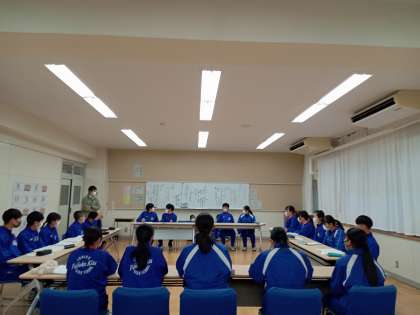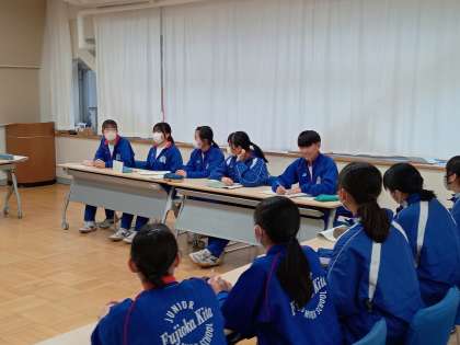 はじめは緊張からか、形式的にクラスで話し合ったことの報告をしたり、隣の人と相談しながら意見を述べたりしていましたが、だんだん緊張がほぐれ、本音で自分の意見をだしあいながら、学年の実態を踏まえながら、話し合いを進めていました。今回の話し合いを元に原案を練り、先生方との協議など、過程を踏んで生徒総会までに原案を完成させてくれるそうです。