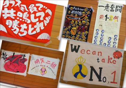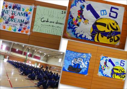 体育館には、各クラスの学級旗とそれぞれの思いのこもった団結の証が貼られ、朝から熱気で溢れていました。