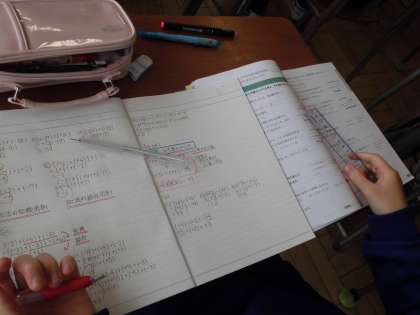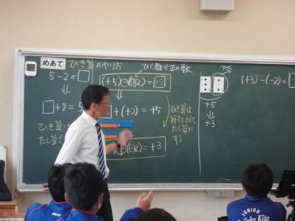 1年生数学の授業の様子です。 正負の数の足し算・引き算にチャレンジ中です。