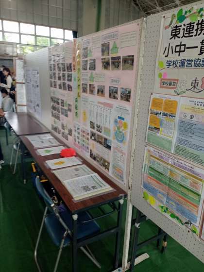 そんな中で、体育館では、学校運営協議会の取組を報告するブースがあり、本校区のぽ☆ら☆り☆す(北一貫校学校運営協議会)のメンバーも朝から、活躍してくださっていました。
