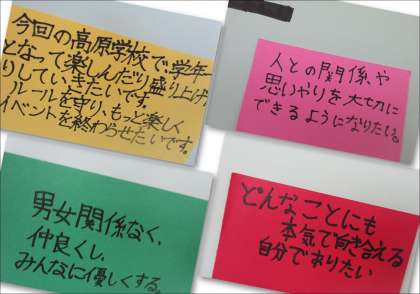 5月17日(金) 1年生高原学校迫る 公開日 2024/05/17 更新日 2024/05/17 できごと 1年生のフロアには、赤城高原学校のスローガンをはじめ、実行委員会の人たちが中心となって、成功に向けた仕掛けがたくさん掲示されています。 入学後初めての大きな行事です。みんなでスローガン「エルフ」を達成し、思い出に残る行事にしてほしと思います。頑張れ!1年生。