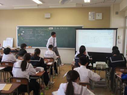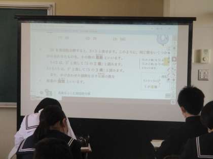 1年生数学の授業の様子です。 今日は、「累乗」について、学んでいました。