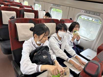 朝が早かったため、東京までの新幹線の中で朝ごはんを食べる姿もありました。東京駅で東海道新幹線に乗り換え、いよいよ京都に向かいます!